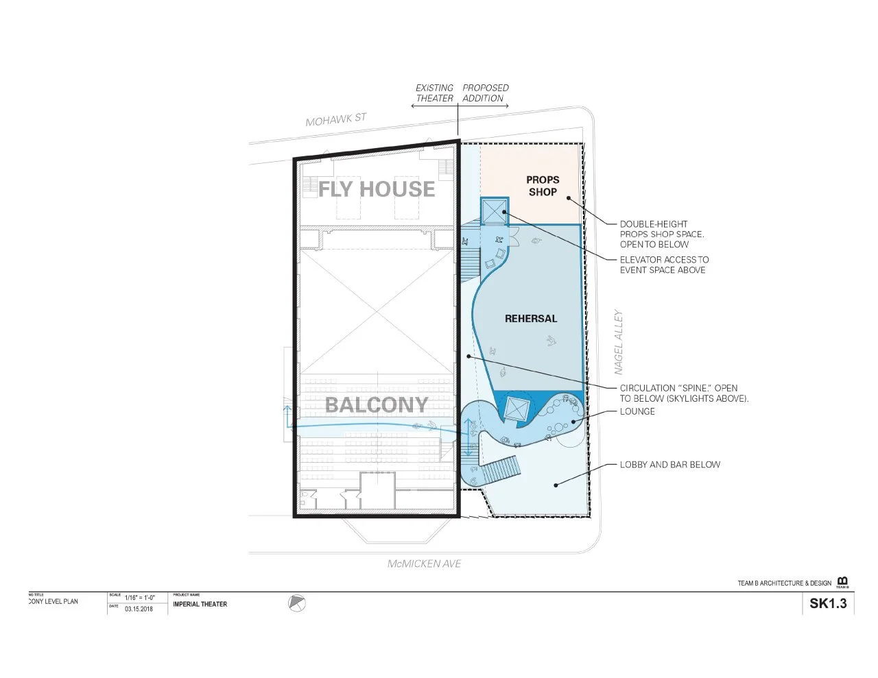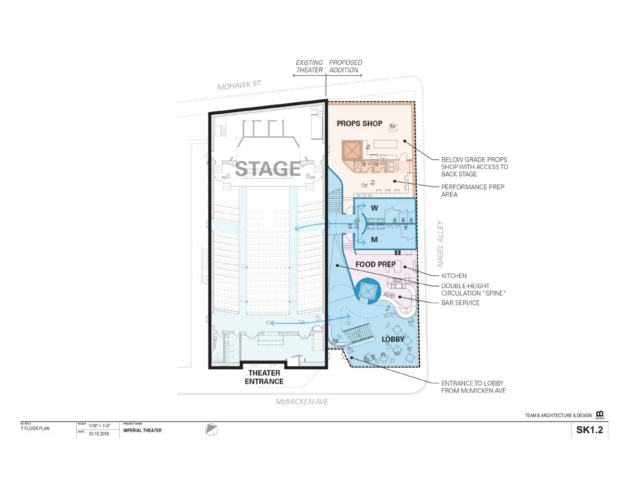 Situated at the base of a hillside in a historic intersection of Cincinnati, OH between the University of Cincinnati, the Historic West End and the Historic Over-The-Rhine, the Imperial Theater is to be renovated and expanded as a theater, class space, prop shop, cafe and event space.